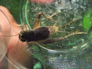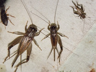 【左】スズムシ 【中】ツヅレサセコオロギ?♀ 【右】ミツカドコオロギ、オカメコオロギ、シバスズ♀