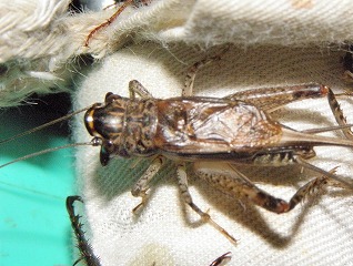 【中】クサヒバリ♀(ウスグモスズと似ていますが後ろ足に褐色斑があります)