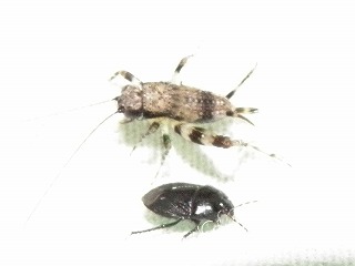 【左】ヒメガムシ 【中】コガムシ 【右】アオドウガネ、クモの仲間、ゴミムシ、ハネアリ