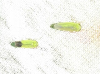 【左】アブラゼミ 【中】ツマギロヨコバイ 【右】左、ツマギロヨコバイ。