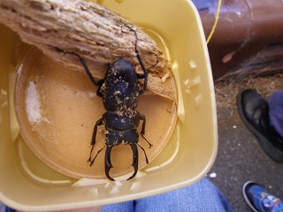 【中】コクワガタ (今年2月、朽ち木の虫観察会で捕らえた幼虫が成虫になりました)