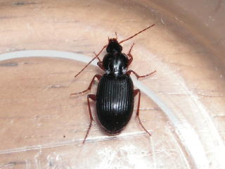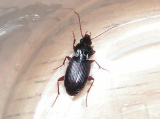 【左】ツヤヒラタゴミムシ類?(室内プール場の付近にいました)      【右】ナガゴミムシ類?(室内プール場の付近にいました)