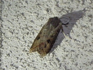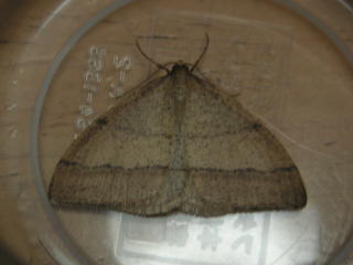 【左】ノコメトガリキリガ(冬の灯火の定番です)           【中】チャエダシャク?          【右】カバナミシャク類