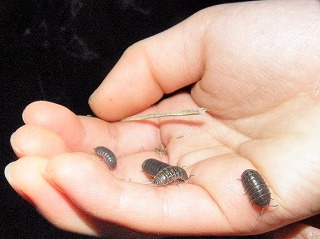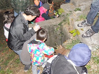 【左】子どもの3大好物のダンゴムシ          【中】湧き水の中にスジエビがいました。          【右】湧き水の中にヨシノボリもいました。