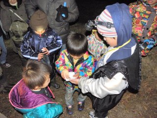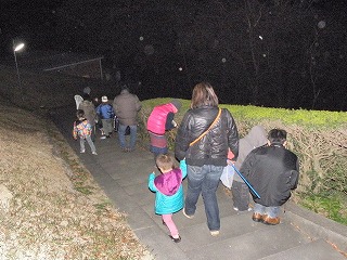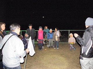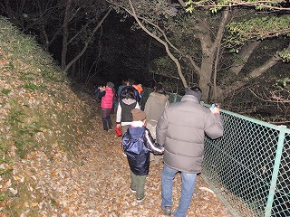 灯火観察設備を設置後、ナイトハイクに出掛けました。大曽大池の北側の森の縁に作られらた散策路を動物園の方向に向かい進みました。コースの中に森、草原、湧き水など変化に富んだ環境があり、色々な生きものを観察でき皆さん楽しいナイトハイクができました。  冬の星空観察は、あいにくの曇り空で、雲間から時折り月がのぞきましたが月見は断念しました。最後尾に森田さんが撮影された皆既月食と牡牛座のアルデバランが載せてありますのでご覧ください。(降幡 記)