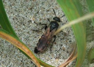 【左】ツルギアブ類    【中】ハマベツチカメムシ?(似た種があるそうです。海浜性植物の付近の砂地を這っていました)   【右】クロヘリヒメテントウ