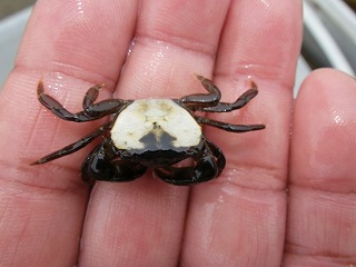 カニのなかま・・・イシガニ、タカノケフサイソガニ、ヒライソガニ、イソガニ、マメコブシガニ、タイワンガザミ(幼ガニ)、アミメキンセンガニ、ガザミ
