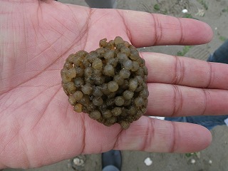 【左】二枚貝・巻き貝 【中】その他いろいろ 【右】謎の卵塊