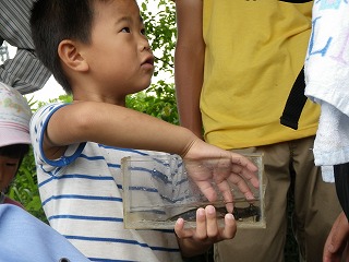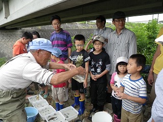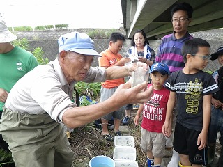 1時間くらいして、橋の下で捕まえた生き物の分かち合いをした後、捕まえた生き物を川へリリースして解散しました。
