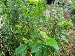 【左】オオフサモ(特定外来生物)   【中】クワ  【右】ジュズダマ