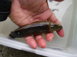 今年は前日の雨の影響のせいか、魚はあまり見つかりませんでしたが、中には、ウナギの稚魚や、大きなカワアナゴを捕まえた方もいてうれしそうでした。
