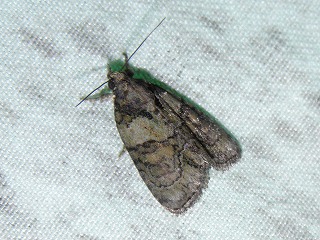 【左】最後に灯火に来た虫を観察しました。 【中】オオシマカラスヨトウ? 【右】イチモンジセセリ