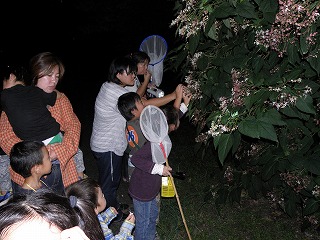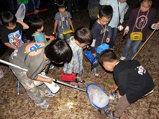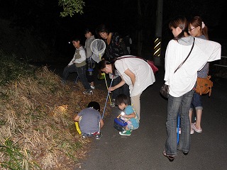 【左】たくさんの虫と人の出会いがありました 【右】虫の音を聞きながらナイトハイク