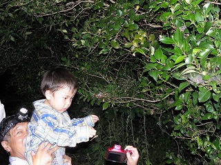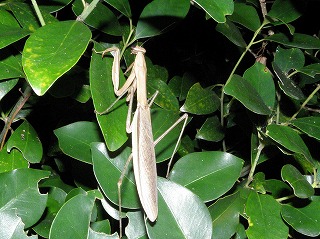 19:05頃から指導員自己紹介、降幡さんが挨拶とコース説明して神社を南側から左回りに一周するナイトハイクに出掛けました。出掛けてすぐカマキリとアブラゼミが見つかり子供たちの目が輝きました。昨年同様南側で巨大マダラカマドウマが何匹も見られ、昨年以上に盛り上がりました。夜に活動するアリの行列も注目を引きました。
