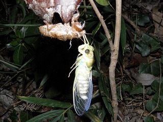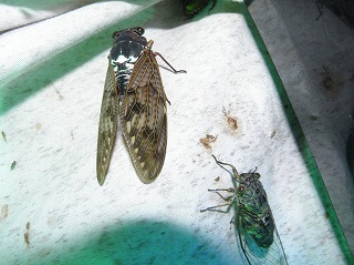 ウスイロササキリ、マダラスズ幼虫、オカメコオロギ、アブラゼミ、ツクツクボウシ、クロカメムシ、イネカメムシ?、シラホシカメムシ類、