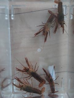 【右】掬い上げられたザリガニは逃げるのに必死 |