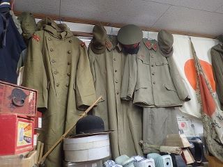 柳川さんが長きにわたって収集してきた珪化木を始め石の博物館かと思いきや、石だけでなく民具、写真、遺跡からの出土物、戦争に関わるヘルメットや軍服、銃、サーベルなどなど、実にたくさんのものが並べられっている「不思議館」だった。入館料なしだけでなく、なかなか拾えないような珪化木や土岐石など、外に置いてあるものから欲しいもの持って行っていいと言われ、またまたびっくり。入館には電話予約をしていった方がよいとのこと。