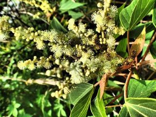 【左】人知れずアカメガシワが満開 【中】婚姻色のでかかったオイカワと スマートな鮎 【右】明徳寺川水族館