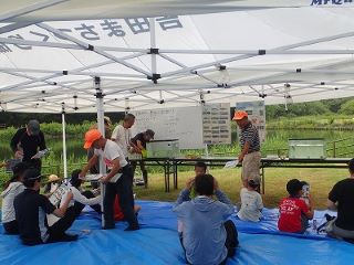 あったため池に親しみを持ってもらおうと、地域のため池保存会や、農業振興課、愛