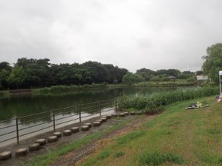 池の周りの護岸にある石の間や、池から流れる小川、池の周りを流れる小川、湿性