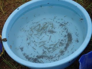 時間になりテントの下で生き物の確認をした。持って帰って飼育したいという親子