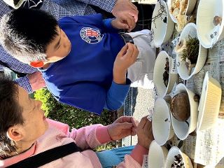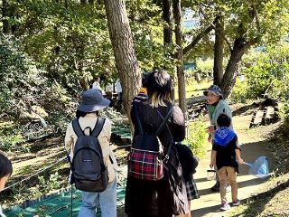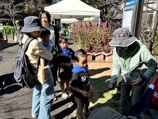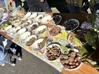前日の雨をよそに3日は風が心地よいいい天気。心なしか人出が少ないと思えば近隣の小学校で運動会開催の情報。それでも小学校以下の小さい子を連れた家族連れが催し物を回って楽しんでいた。観察会のブースでは「どんぐりの種類ってこんなにあるの?」とか、「このキノコ本物?」とかいう言葉が聞かれ、午前と午後の観察会では、「こんなの始めてみた。」と落ち葉をめくったり、池をのぞき込んだりして楽しむことができた。