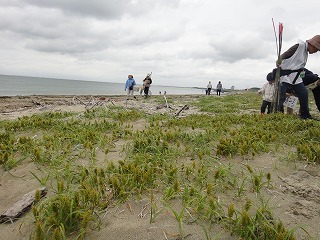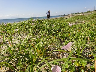 ハマダイコン、ハマヒルガオ、ハマボウフウ、ハマゴウ、コマツヨイグサ、スナビキソウ、コウボウムギ、アツバキミガヨラン
