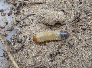 【左】スナゴミムシダマシの仲間   【中】同左   【右】コガネムシ類の幼虫