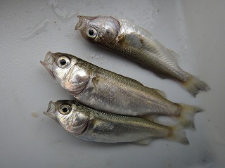 【左】ボラ稚魚   【中】ボラ稚魚   【右】ハゼ稚魚