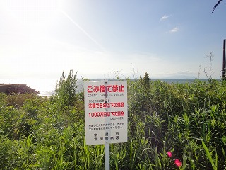 【左】ハマダイコン   【中】ハマダイコン種子   【右】ごみ捨て禁止