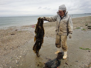 【左】海苔網洗浄場   【中】ボラ干物   【右】漂着ワカメ