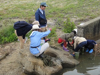 【左】排水路潮溜まり   【中】稚魚採集   【右】