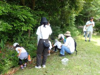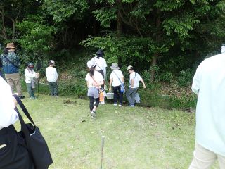 参加者は4グループに分かれてそれぞれ観察会員が率いて緑地帯を回りました。