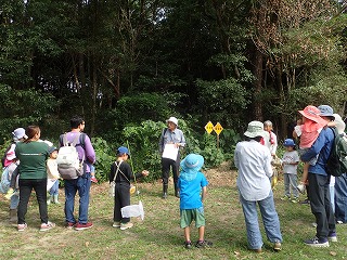 9月も末になったというのにツクツクホウシは鳴き、日中は熱中症警戒アラートがまだ出る。何でも今年は35度以上の日が52日だとか。明日は雨模様の様子。駐車場でキノコについての話と注意事項を聞いて林の中へ出発しました。道を外れて森の中へも進みます。森の中は夏の猛暑の影響か落ち葉が乾いた感じがしてキノコがあるか?と思いきや、ところどころ落ち葉を持ち上げてきのこがかおをだしています。キノコが見つか見つかると、「キノコだ!」と大人からも子供からも歓声が上がりました。案外大型のキノコが見つかりました。