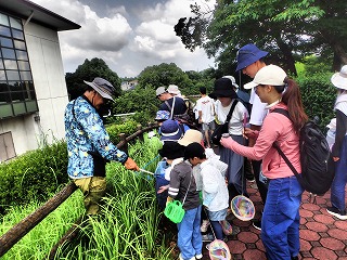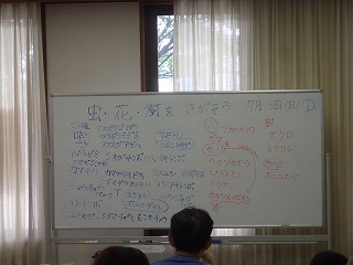 最後に見られた生き物を分かち合いをした。ヤモリを捕まえた子がいて、虫カゴを回してみんな間近で見てかわいさを確認した。確実に飼えない場合はふるさとに戻してあげようという約束をして解散した。(記 竹内秀)