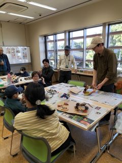 まずは田中さんの説明で工作を開始し、製作者ごとによる作品の発表なども行いました。今回は採集なしでしたので時間を使いゆったりと工作できました。(記:浅井)