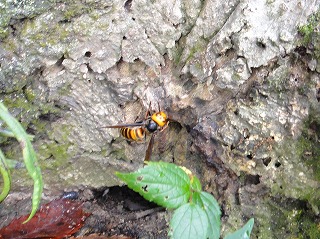 【左】ヒヨドリバナ群生   【中】キイロスズメバチ   【右】スズメガ 幼虫3匹