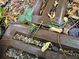 【左】林床はジョロウグモの網がいっぱい   【中】イチョウの実(銀杏)   【右】エンマコオロギ