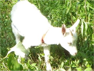 【左】ゴム銃の“的あて遊び”の的(まと)。写真クリック→ビッグ 【中】ヤギの“ユキちゃん” 【右】同左ユキちゃんのアップ
