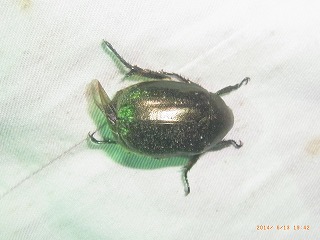 【左】たくさん虫が集まっているよ 【右】コガネムシの仲間いるよ