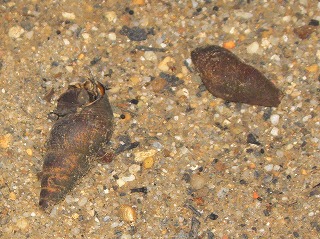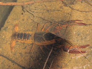 【左】マダラガ類 【中】水路にアメリカザリガニ 【右】水路にカワニナ