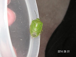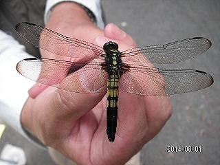 【左】カブトムシを捕ったぞお 【中】ホオズキカメムシ 【右】オオシオカラトンボ♀(林縁にいました)