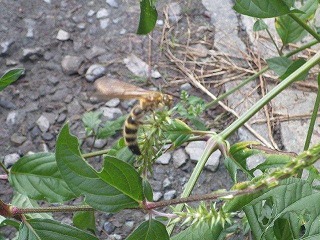 好天に恵まれ、下見より遙かに多くの生き物を観察した。大人の方も子供も大変熱心で、モンキチョウ、バッタ、ウスバキトンボ、テントウムシ等を捕らえて、大喜びである。 途中、オッタチカタバミで10円玉をみがいたり、笹舟、笹の飴、ツバキの草履等を作ったりした。草履については、現代の子は分からないので、お母さんが「草履はサンダル」と説明して下さって助かった。グリーンベルト帯が竹やクスノキ等の大木に囲まれ、日陰になっているので、涼しくて気持ちよく観察することができた。(記:吉房)