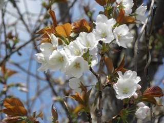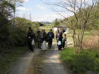 寒さのため花が散るのを待っていてくれたソメイヨシノでないサクラたちが迎えてくれました。小道で、タネツケバナの在来種と外来種(ミチタネツケバナ)が見つかりました。ミミナグサは見つかりませんでした。これはとても少なくなっているそうです。(ミミナグサはオランダミミナグサに比べて、がくや花茎の赤茶色が濃い)アケビの花がひっそりと咲いていました。ミツバアケビとアケビの雌花の付き方がにているようで実はにていない。案外、親戚としては遠いのかもしれないねという話も出ました。