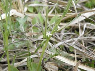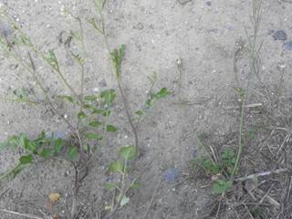 【左】カナビキソウ。 【右】ロゼットのあるのがミチタネツケバナ ないのがタネツケバナ。種がまっすぐなのがミチタネツケバナ 少し曲がるのがタネツケバナ