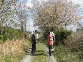 春の歩みは早くなったり遅くなったり、朝は寒さを感じる日でした。田んぼや林のふちの小道を歩きながら春の生き物を探して歩きました。