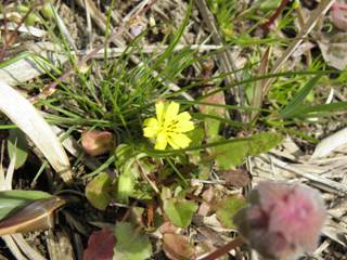 コオニタビラコ、オニタビラコ、レンゲ、カラスノエンドウ、スズメノエンドウ、カスマグサ、シロツメクサ、キュウリグサ、オオイヌノフグリ、タチツボスミレ、スミレ?、フモトスミレ、タネツケバナ、ミチタネツケバナ(外来種)、ナズナ、ホトケノザ、ヒメオドリコソウ、オオジシバリ、