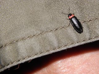 【左】服に泊ったヒメボタル         【右】ヒメボタル