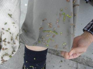 【左】アレチヌスビトハギの襲来A 【右】みんなで座り込んで採ります、軍手が大活躍、ふるたおるもOKです。