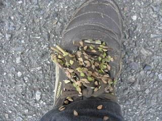 大型台風が2週続けて日本に襲来して久しぶりの晴天の週末。朝から東浦町内はどこも区民運動会のため誰も来ないかな。とお墓の駐車場で待っていると、虫かごをもった親子が東浦高校方向へ。よく見ると3組の家族が。皆さん、町外の知多市、阿久比武豊町、名古屋市今年からの参加とのことでおどろいた。ドングリの話を少しして、今年から東和荘の回りを回ることになっていたので車で移動。ところが、行けるはずの散歩道が草ぼうぼう。林間へはいるとさすがに下草が小さくなって歩きやすくなるが、アレチヌスビトハギの襲来を受け、下半身種だらけ。ハギさんにとっては格好の種の運び屋になった私たちであった。コナラの絨毯や、アケビ、ヒヨドリジョウゴ、クサギの秋の山の宝石たちを実ながら進んでいく。飛山池一週をあきらめ、途中から東亜荘の方へ。東和荘の南の林の中でミツバチの箱がおいてあることろを発見。しばしハチたちの羽音に耳を傾けた。少年がカマキリがほしいとずっと言っていたら後半で4匹もとれ満足の笑顔。今後、公園として年に何度かは草刈りをして整備していただけるよう要望していきたい思った。(記・竹内秀)